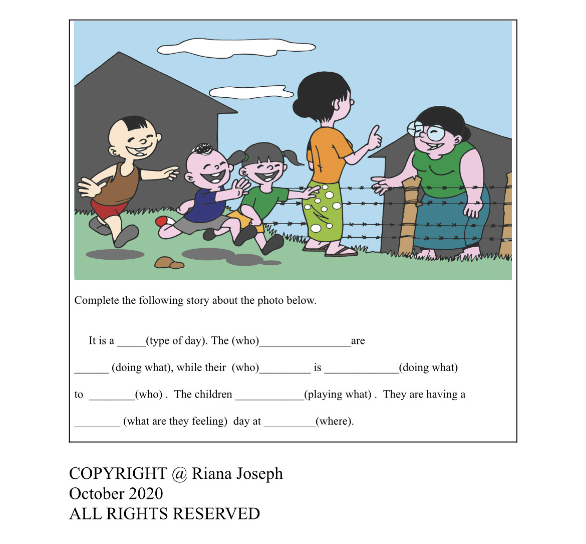 Using a picture, children can express themselves with guidelines to develop their creative writing skills.
