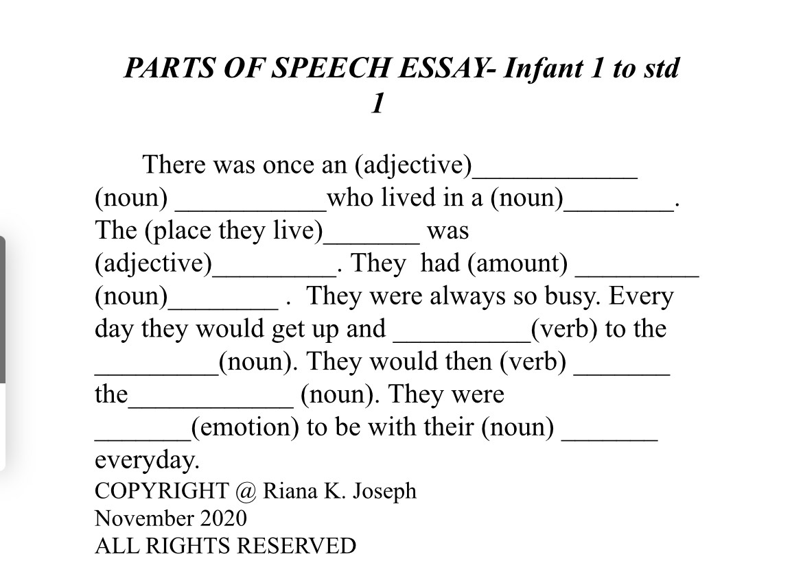 Parts of Speech – Essay – Infants 1 and 2 – by Riana Joseph
